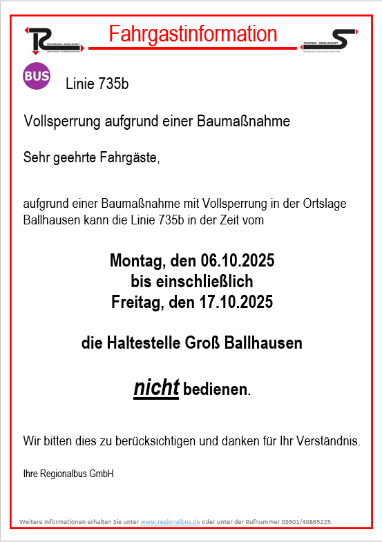 Hohe Kraftstoff- und Energiekosten sowie gestiegene Personalkosten machen eine Tarifanpassung der Regionalbus-Gesellschaft Unstrut-Hainich- und Kyffhäuserkreis mbH und Stadtbus-Gesellschaft Mühlhausen und Sondershausen mbH auch im kommenden Jahr notwendig. Ein Einzelfahrschein kostet dann z.B. 0,20 € mehr als in diesem Jahr. Die neuen Fahrpreise sind unter www.regionalbus.de abrufbar. Fahrausweise zur Entwertung, die im Voraus erworben wurden, behalten noch bis zum 31. Januar 2025 ihre Gültigkeit.
