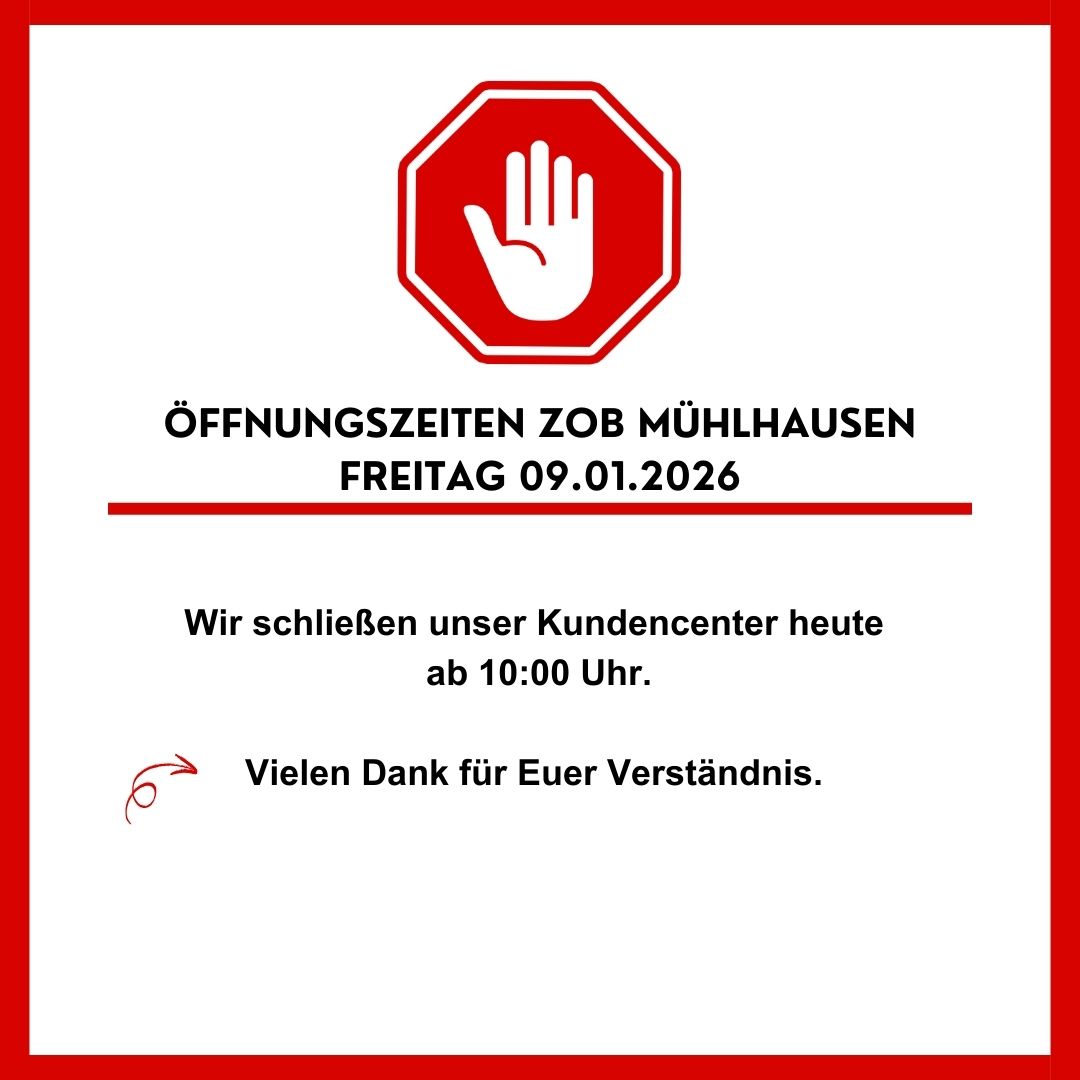 Öffnungszeiten ZOB MHL, Freitag 09.01.2026